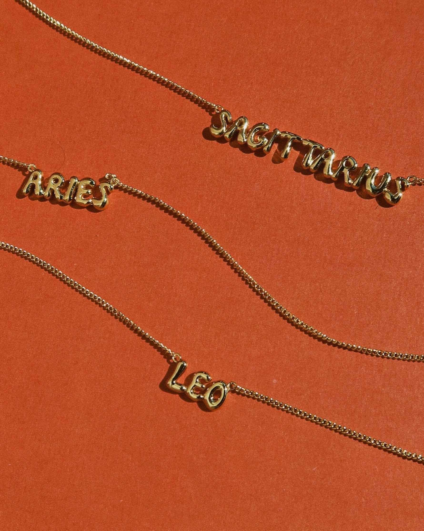 Make it personal with the Cosmo - each pendant features your unique zodiac sign rendered in playful, puffy bubble letters, adding a touch of cosmic identity.