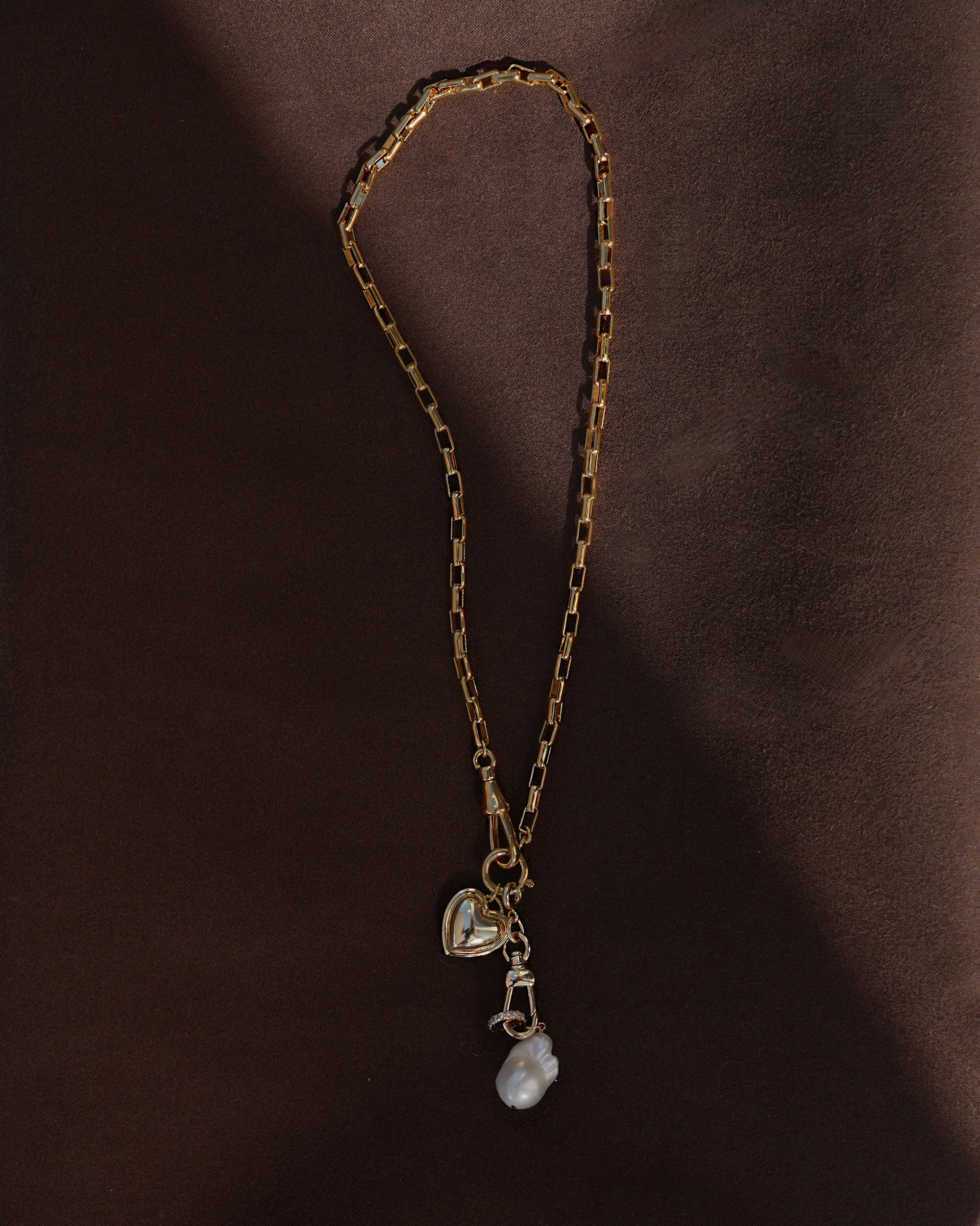 The chain for people who like their jewelry with presence. Puffy links that catch light, finished with a watch clasp and oversized spring ring—aka the perfect setup for your charm collection. Substantial enough to wear solo, strong enough to handle whatever you throw on it.