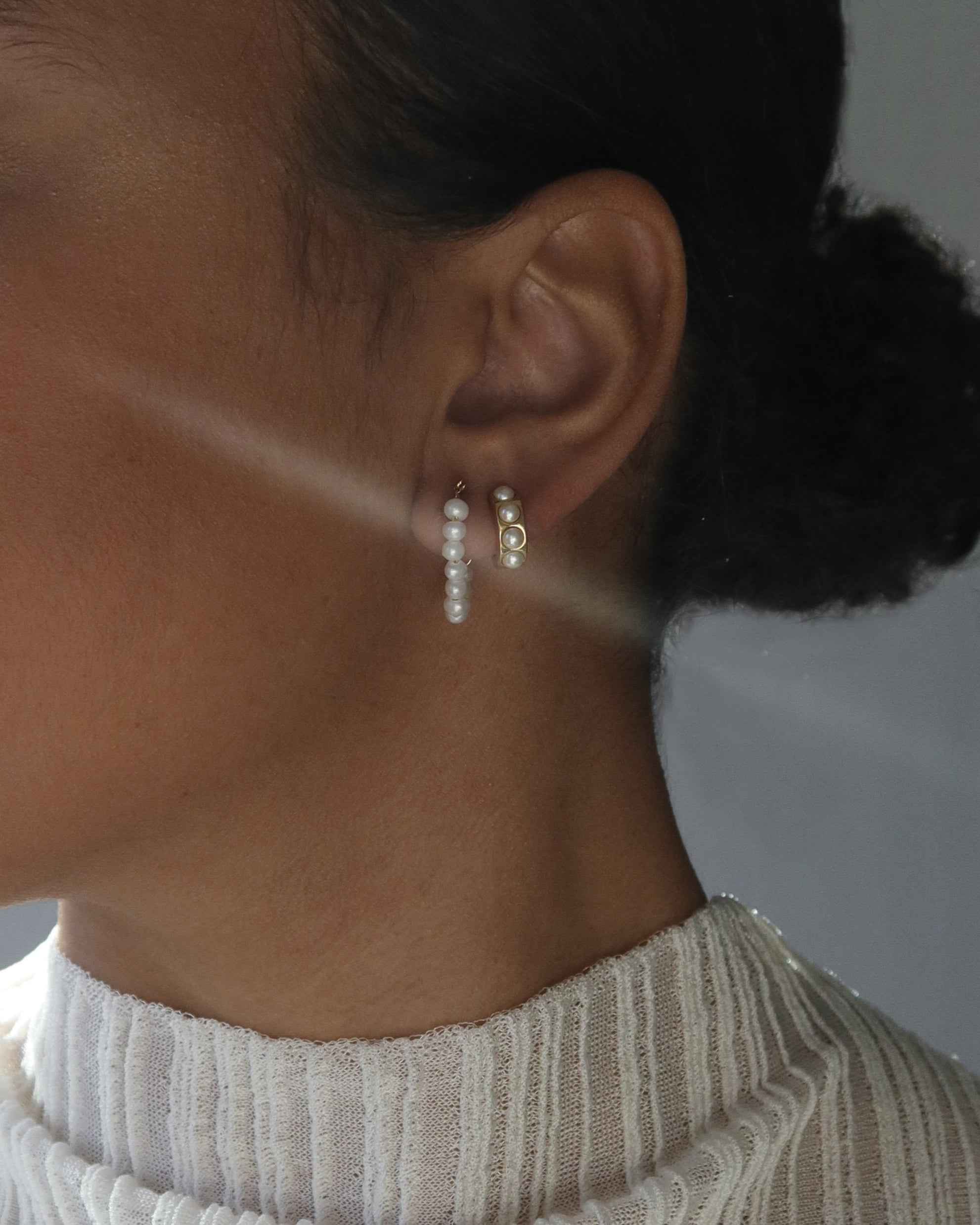 Ready to take your hoop-life up a notch? Peep Rosie. A simple hoop with a series of classic mother of pearl along the way. The epitome of femininity and confidence. Stack her, wear her solo, there really is no wrong choice here.